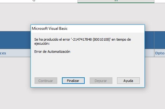 Las macros (ejecutadas mediante “botones”) funcionan correctamente, pero cuando introduzco algún valor nuevo o modifico alguno aparece inicialmente el siguiente error.