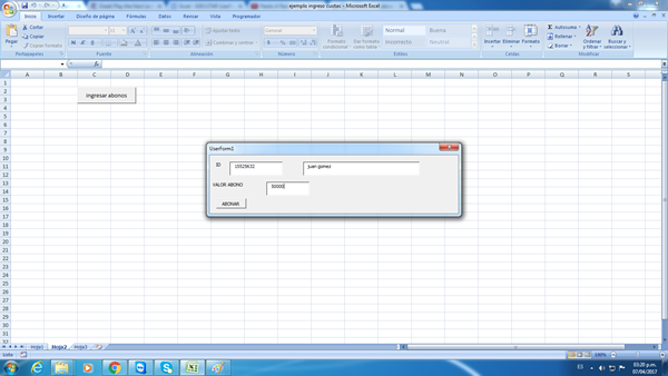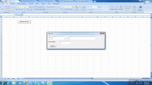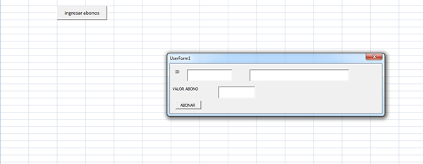 En la hoja 2 tengo un botón que se llama "ingresar abonos" al darle clic me llama el siguiente formulario