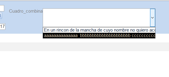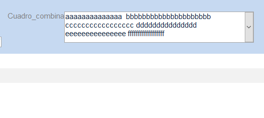 He creado una tabla con campos de texto largo. He creado un cuadro combinado basándome en los campos de texto largo de estas tablas pero no me sale toda la información. ¿Tiene un límite de caracteres los cuadros combinados? ¿Cómo puedo solucionarlo para que me aparezca en el cuadro combinado toda la información de la tabla de texto largo?