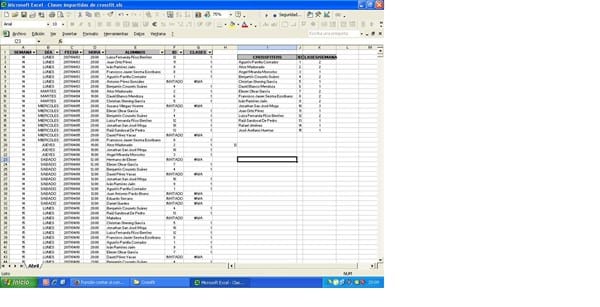 Las clases que tienen cada uno a la semana están en la tabla de la derecha (la pequeña).