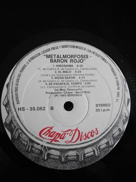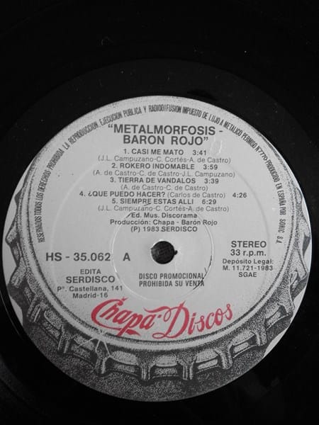 Adjunto fotos del disco LP promocional de BARON ROJO "METALMORFOSIS" .
