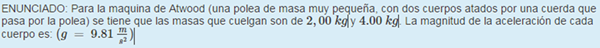 aceleracion = ((m2 - m1) / (m2 + m1) ) g = (4-2) / (4+2) g = (2/6) g = 3.27 m/s^2.