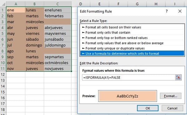 ¿Mediante el uso de formato condicional es factible colorear la (s) celda (s) que no tienen formula?