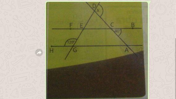 Como determinarían la medida del angulo x, si no hay paralelas en ese segmento, lo podría hacer por medida de ángulos internos del triangulo, pero mi profesora me dijo que no se valía así; así que de favor me pueden explicar otro método, si no existe otro método, pues explíquenme como se hace.