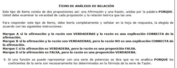 Marque D si la afirmación es FALSA, pero la razón es una proposición VERDADERA.