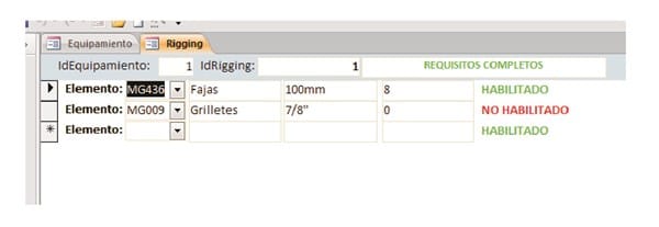 Tengo un formulario [Rigging] continuo en el cual, mediante un menu desplegable voy seleccionando diferentes artículos.