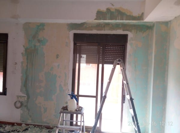 Bueno resulta que me he puesto probar a ver si puedo quitar el gotelé en una pared y iba bien, demasiado bien. La he enhumedecido con agua y se desprendieron fácilmente no solo el gotelé sino también varias capas de pintura antigua. Rasca rasca.