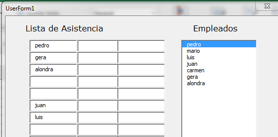 Por ejemplo al seleccionar un textbox pasar el empleado que seleccione del listbox al darle clic ya que en la lista se deja varias filas en blanco