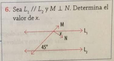 90° + x + 45° = 180° (Por ser ángulos conjugados internos)