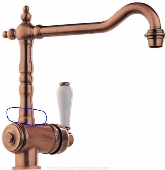 Tengo este grifo y se sale por el lugar que marco. ¿Tiene arreglo? Debe ser una junta pero no veo por donde desmontar para cambiarla.