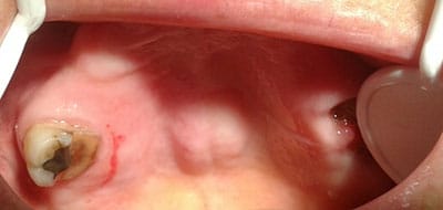 En el momento de la ingesta, con el paso del tiempo y el crecimiento del tumor, suele dañarse la mucosa que lo cubre, trayendo como posibles consecuencias alteraciones de la voz o molestias al comer. Aun cuando se extirpe el bulto del paladar puede reaparecer, sobre todo si no se eliminó completamente y cada vez que vuelve a surgir incrementa el riesgo de desarrollar un tumor maligno.