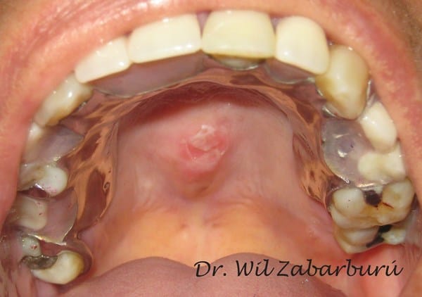El bulto en el paladar puede ser causa de un tumor maligno, ya sea que se ubique en el paladar duro o en el blando. Frecuentemente no se observan síntomas más allá de la protuberancia, que muchas veces puede producir inflamación y dolor.