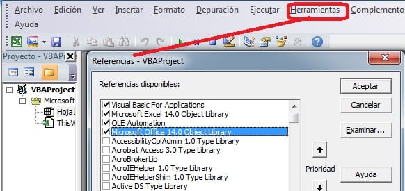 Recibe el mensaje de error "No se puede encontrar el proyecto o biblioteca" al ejecutar un proyecto VBA
