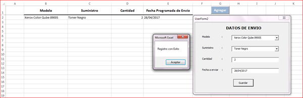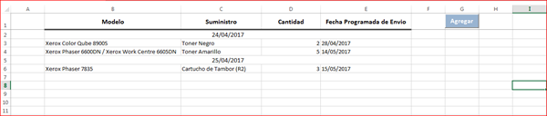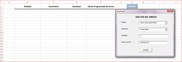 En el que puedo agregar el Modelo, Suministro, la cantidad y la fecha en la que esta programada enviar dicho suministro, asi:
