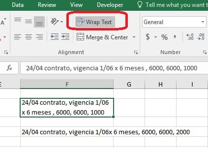 En la celda tengo el texto en 2 líneas y quiero que aparezca en una sola línea.