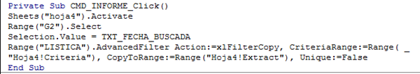 No me funciona el filtro cuando lo quiero hacer desde el formulario, allí tengo una listbox, un botón de comando y un textbox. Lo que quiero hacer es que a la hora de la ejecución, al escribir la fecha en el textbox, automáticamente ésta vaya y se pegue al rango de criterios que ya había definido antes, pues he grabado la macro y he copiado el código en el botón de comando. Cuando ejecuto, escribo la fecha y clickeo el botón, el filtro me deja de funcionar. Yo supongo que tiene que ver con los formatos pero la verdad no sé como hacerlo. ¿Hay alguien que me pueda ayudar? Por favor!
