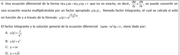 Una ecuación diferencial de la forma que no es exacta, es decir, se puede convertir