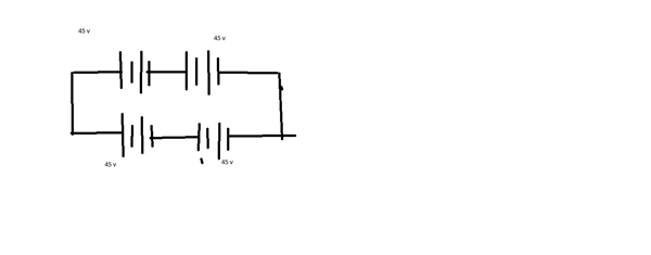 Estudiando, vi en un libro 2 generadores de 45 v conectados en serie y luego en paralelo con otra rama de 2 generadores de 45 v