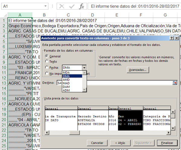 ¿No sabrías de alguna forma de importar el archivo correctamente?! Si queres me avisas y te mando el archivo txt.