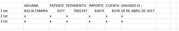 Estoy empezando a descubrir las maravillosas macros y tengo una necesidad en mi trabajo me llegan infinidad de archivos .txt de los cuales requiero cierta información pero tengo que abrir de uno en uno y validarla manualmente asi que se imaginaran que nunca acabo, por lo que necesito su ayuda para crear una macro en la cual se extraiga ciertos de datos del txt y se posicionen en columnas tales como aduana, patente, pedimento, importe, etc.
