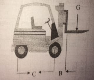 Determinar el coeficiente de seguridad que tiene un montacargas cuando se utiliza una paleta de 48 pulgadas, expresado en porcentaje. Las características se describen a continuación capacidad nominal 10.000 kg la distancia fija del contrapeso es de 3.5m y una contanste B de 100 cm
