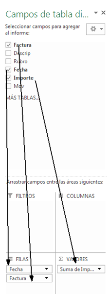 - Arrastra las etiquetas "Fecha" y "Factura" al área de FILAS.