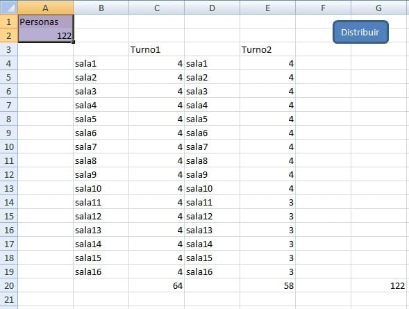 Necesito un código en visual basic para que me distribuya a las personas de tal manera que los dos turnos tengan sus salas completas en los dos turnos. Bien con 4 personas o bien con 3