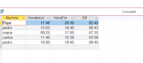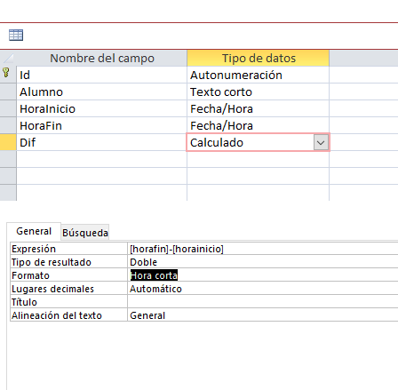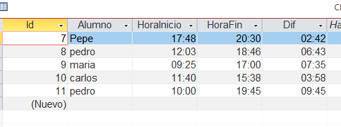 Como sumar o restar horas y minutos en Access