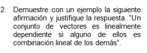 2. Demuestre con un ejemplo la siguiente afirmación y justifique la respuesta. “Un conjunto de vectores es linealmente dependien