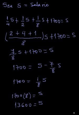 c) Una octava parte de su salario se gasta en sus pasatiempos.