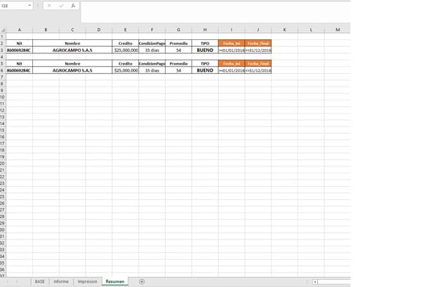 Con es mismo informe hacer un consolidado que me saque cada cliente con su calificación, promedio condición de pago y demás como se ve en la imagen