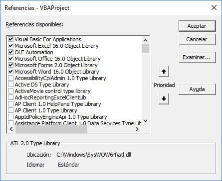 Al ejecutarla me manda error y tengo estas referencias activadas