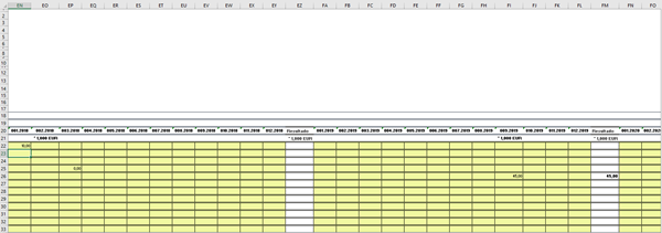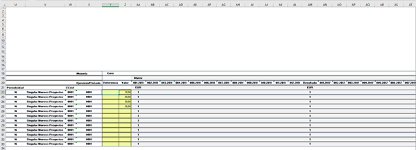 Este código lo que hace es copiar lo que tengo en la columna "Valor" (Columna Z) y lo pega después de ir a buscar donde dice importe y bajar 3 filas, y moverse 26 columnas así quedaríamos en la columna 001.2018 para comenzar a pegar hasta aquí todo bien.