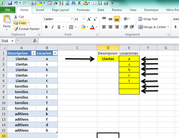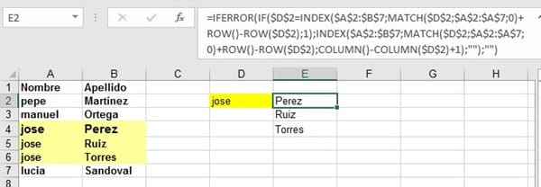 Formula de Excel, que devuelva varios Resultados de Busqueda.