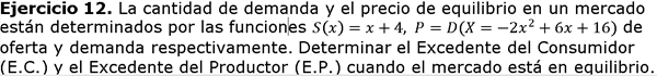 La cantidad de demanda y el precio de equilibrio en un mercado están determinados por las funciones ...
