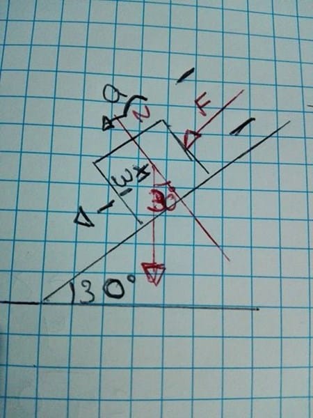 Un cuerpo de peso W se desliza hacia abajo por un plano liso que forma 30 grados con la horizontal ¿Qué fuerza paralela al plano se debe aplicar para que se deslice con una aceleración igual a la gravedad?