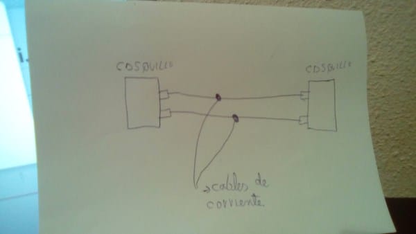Dibujo mal, perdón. Como veis he conectado cada cable de corriente a cada uno de los cables que sale de cada casquillo, y solo arde una bombilla, pero si pongo la bombilla en el casquillo donde antes no ardía ahora si, pero solo una, en que me he equivocado.