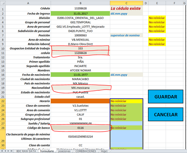 Necesito que me apoyen en lo siguiente una macro que me permita bloquear las celdas marcadas en rojo que a su vez estan de color gris, que no me permita modificar esas celdas, ni pueda editarlas a su vez, en la macro poder limpiar las celdas que no estan señalas de color Amarillo