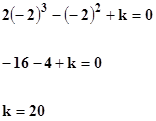 Determina el valor de k con tal de que la división (2x^3-x^2+k):(x+2) sea exacta.