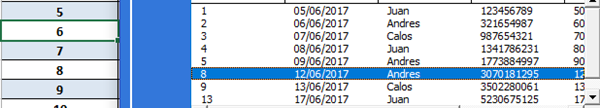 Lo que sucede es que cuando realizo la selección los números de resgitro varian, es decir, si selecciono en el ListBox Un registro que esta en la posición 8 (la posición se refiera al código que lleva dentro de la tabla) en la hoja de calculo me selecciona el registro 6 y no el 8.