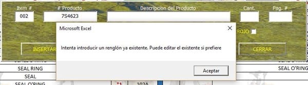 MsgBox "Intenta introducir un renglón ya existente. " & _