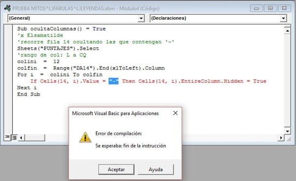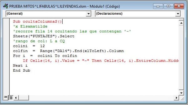 Soy profesor y me encuentro creando una planilla que me facilite el análisis de mis estudiantes. Lo que necesito es que en la hoja "Puntajes" se oculten las columnas que en la fila 14 tengan el signo "-". Esto para que el ingreso de los datos sea más sencillo.
