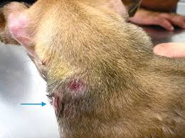 Pues el otro día duchandola me percaté de que tenia en el cuello una heridita, con un bultito que se nota interior. Pues yo creo que se tratará de la picadura de garrapata, ya que sobre el 15 de abril fuimos al campo, pero la primera pipeta del año no se la puse hasta el 1 de mayo. Por lo tanto yo no sabía que tenia esa garrapata ahí, se supone que la garrapata se habrá soltado sola o si no es eso, podría haber sido arrancada al cepillarla con el cepillo aunque no creo. Bueno pues eso, que ahora tiene ahí el bultito, ¿tengo qué hacer algo? ¿Es una tontería y se va con el tiempo o tengo que ir al veterinario a que hagan algo?