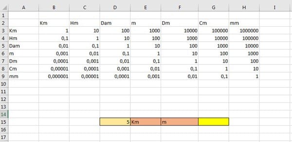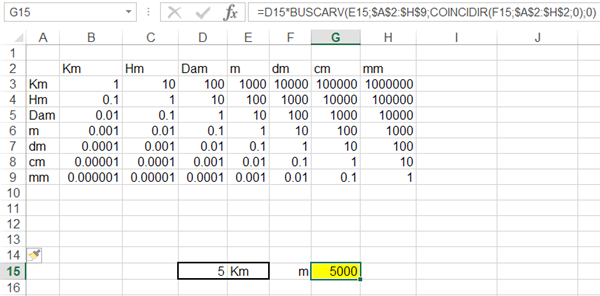 En E15 tengo puesto Km y quiero que me lo busque en la columna A y en F15 tengo m y que me lo busque en la fila 2... Y me de el resulta de la celda E3... Y que aparezca en la celda G15. Es como si introdujera una coordenadas y me diera el resultado de las coordenadas... No se si pediré mucho.
