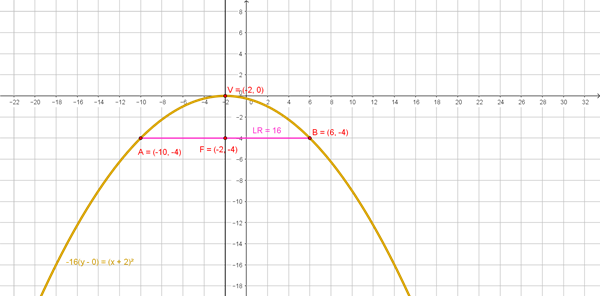 Determinar las coordenadas del vértice, del foco, de los extremos del lado recto y la longitud del lado recto.