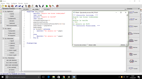 Sucede lo siguiente debo hacer un algoritmo según lo siguiente: A un trabajador le pagan según sus horas trabajadas y la tarifa está a un valor por hora. Si la cantidad de horas trabajadas es mayor a 40 horas, la tarifa por hora se incrementa en un 50% para las horas extras. Calcular el salario del trabajador dadas las horas trabajadas y la tarifa.