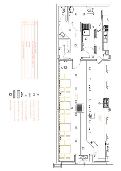 Consultar la reglamentación vigente para determinar si se trata de un local de pública concurrencia. En caso de que se trate de un lpc, colocar las luminarias de emergencia en los lugares marcados por el reglamento, y dividir el alumbrado de la zona de público en los circuitos necesarios para cumplir el reglamento.