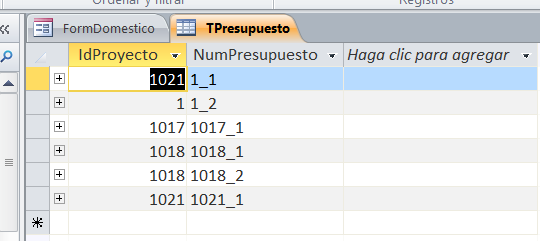 DoCmd. RunSQL "INSERT INTO TPresupuesto ( IdProyecto, NumPresupuesto )SELECT forms!FormPresupuesto!IdProyecto, forms!FormPresupuesto!TxTNumPresupuesto FROM Registro;", -1