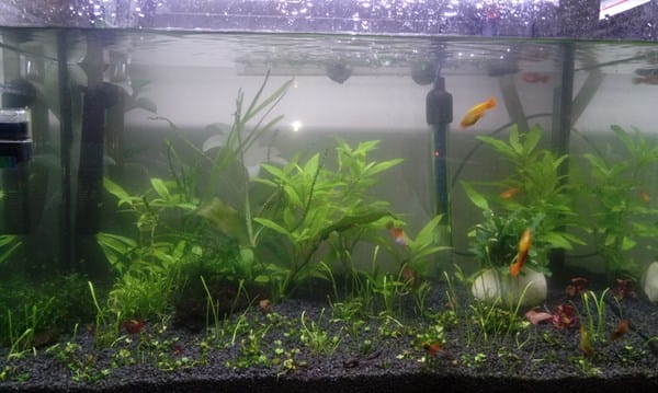 Ya tengo el nuevo acuario montado aunque aún no lo he terminado porque tendrá 1 semana o así. Solo le he metido 3 peces pero poco a poco le iré metiendo los 5 que faltan. He plantado algo de marsilea pero las hojas se están poniendo marrones. La verdad es que parte de la lámpara la he compartido con el antiguo tanque pero tengo entendido que aun con poca luz, la planta va bien. No sé qué parámetros debe tener el agua porque todas las plantas son de crecimiento lento y no quiero abonar pero no sé si será necesario. Mis preguntas son: