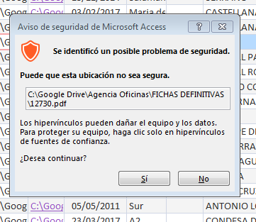 Tengo una base de datos donde al dar un click en un botón me abre un documento doc, o pdf... El tema es que si la base de datos está dentro de mi pc, (escritorio por ejemplo), me abre el documento sin ningún tipo de aviso, ya que ubique la ruta dentro del centro de confianza.